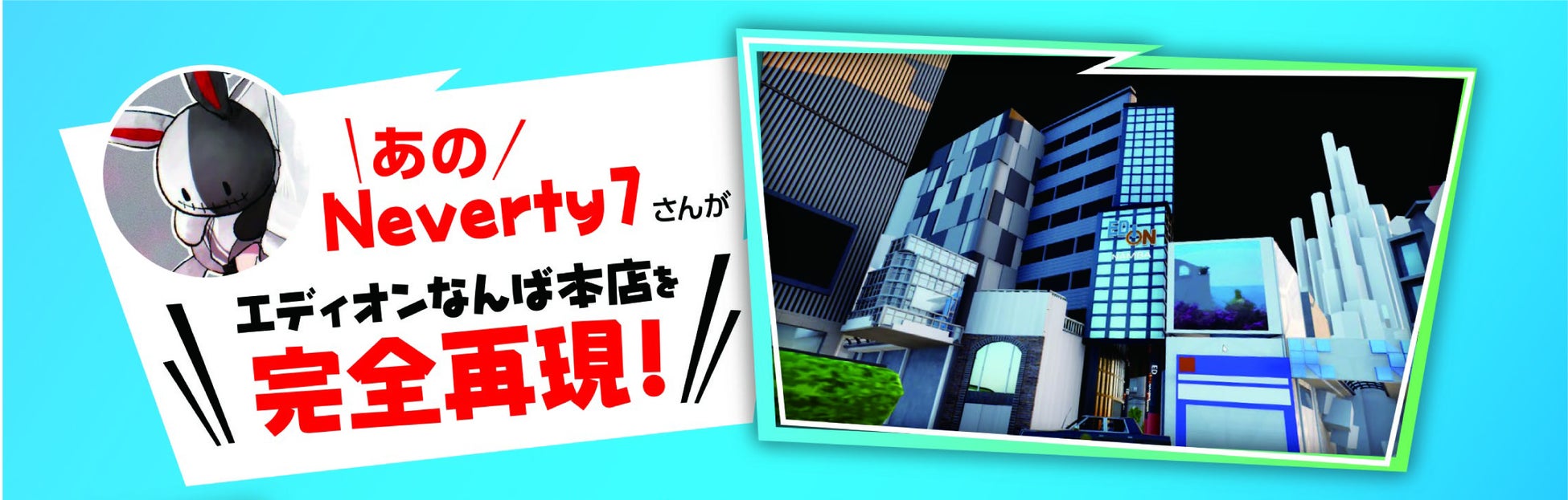 オンラインゲーム「フォートナイト」のクリエイティブモードで再現された、エディオンなんば本店を舞台にタイムアタックで競う完全オリジナル仕様で実施いたします。