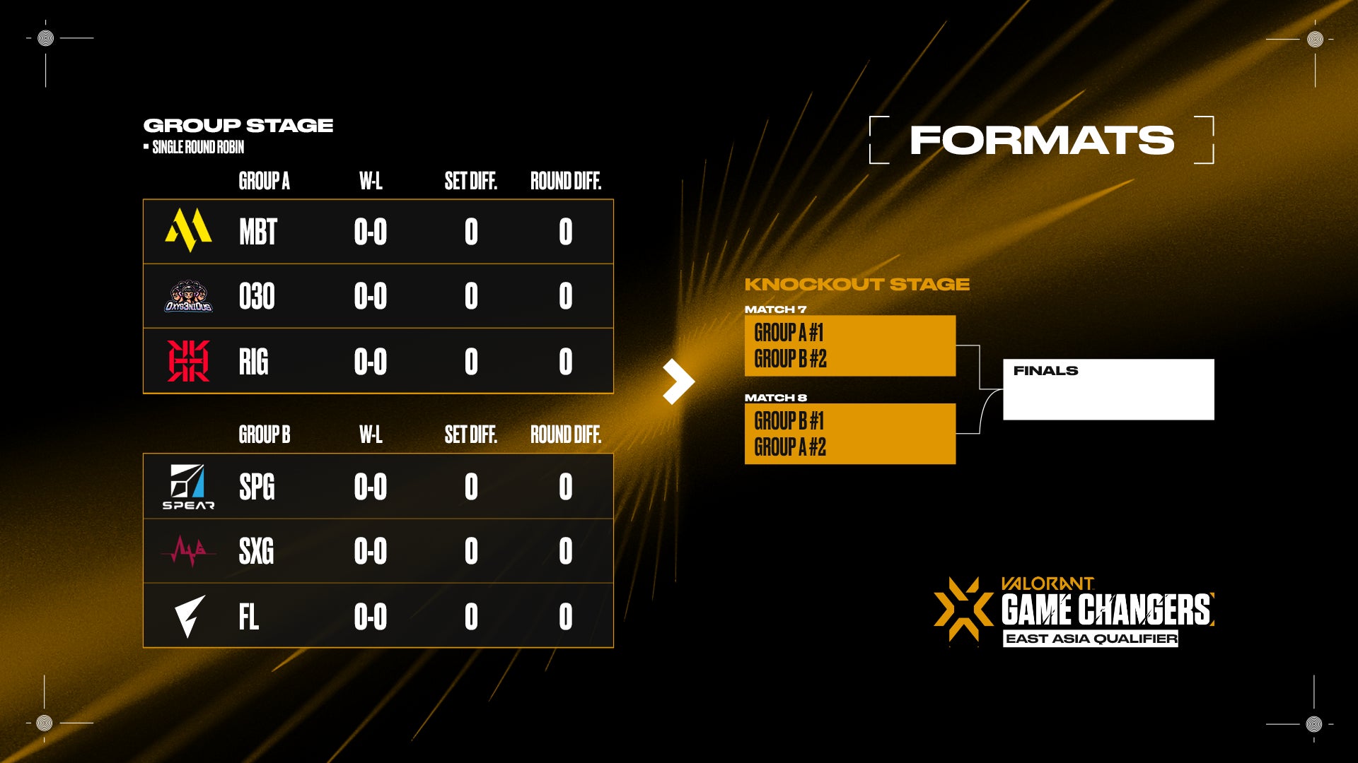 本大会は、「2022 VALORANT Game Changers Championship – Berlin」に出場する東アジア代表1チームを決定するトーナメントです。トーナメントでは日本、韓国、中国から以下の6チームが出場し、最後まで勝ち進んだ1チームにベルリン行きのチケットが贈られます。