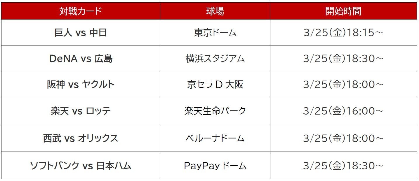 - プロ野球は3月25日(金)にいよいよ開幕!お見逃しなく!