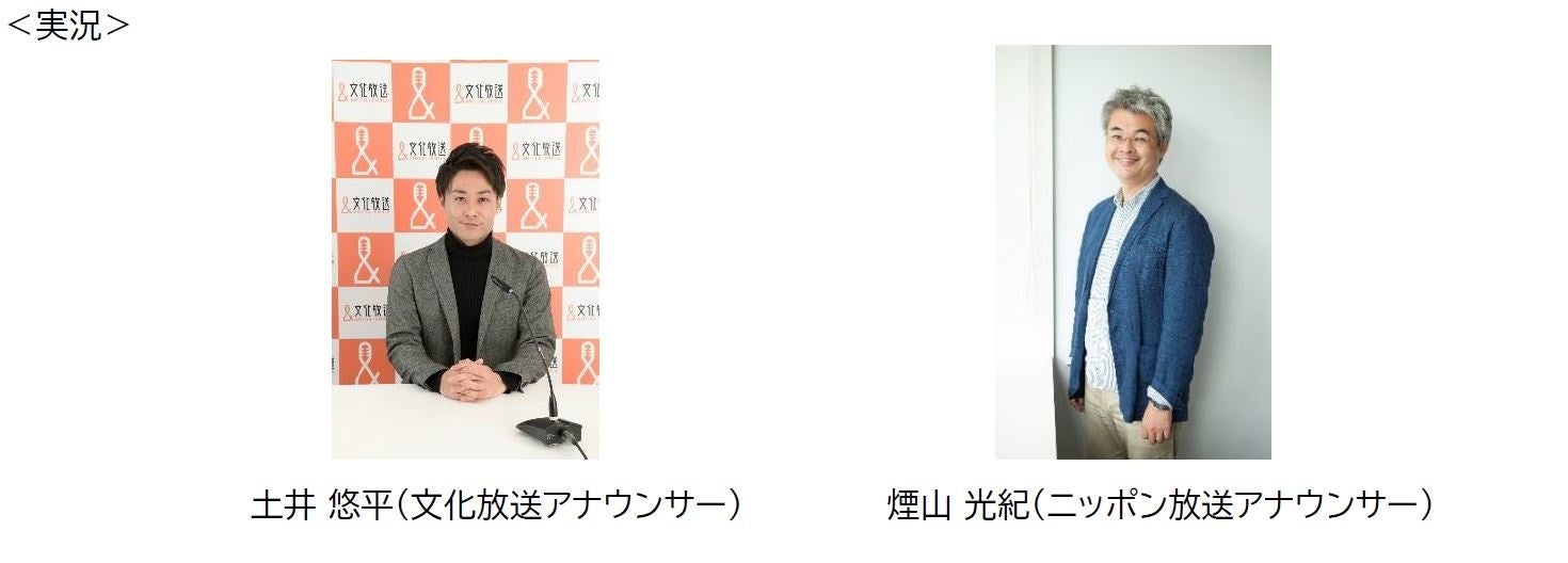 3月20日(日)配信のパ・リーグ開幕戦3試合は土井 悠平アナウンサー、3月21日(月・祝)配信のセ・リーグ開幕戦3試合は煙山 光紀アナウンサーが実況付きでお届けします。