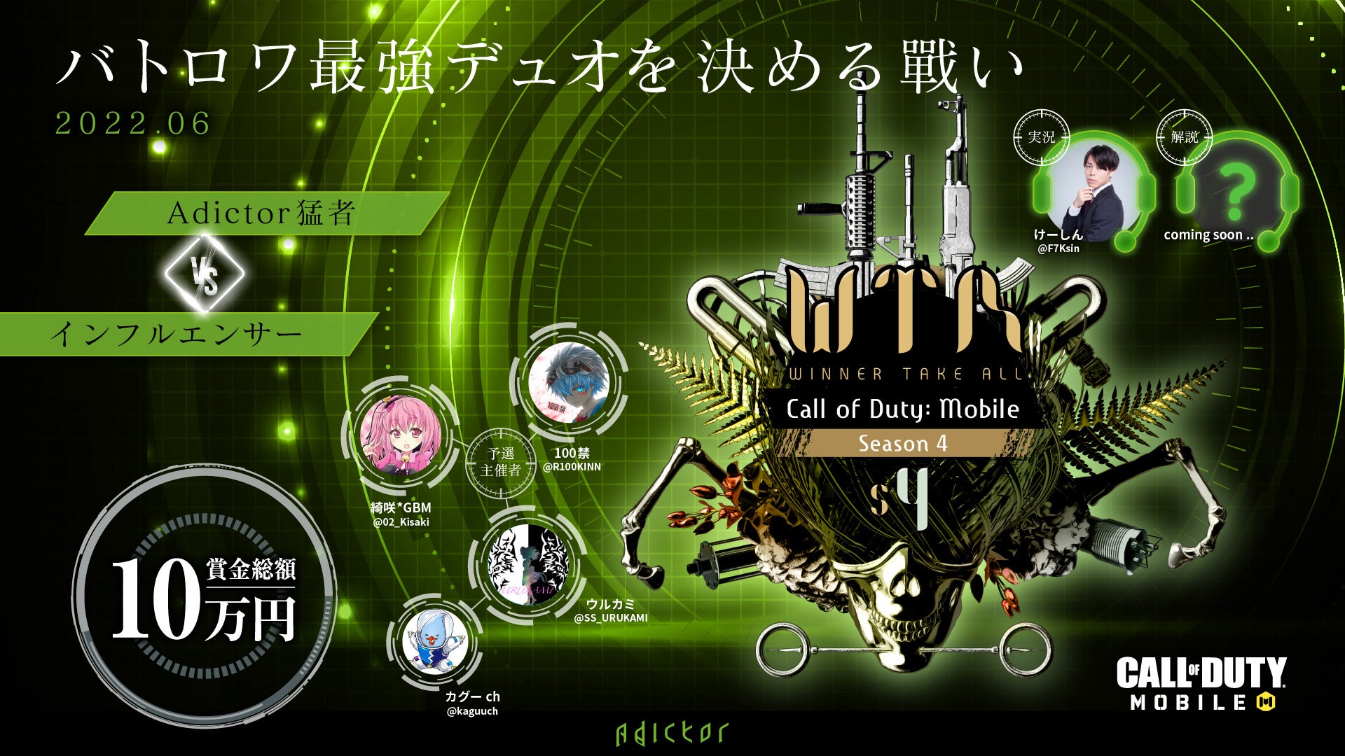 「無名猛者から次代のヒーロー創出」を掲げる全大会賞金付きeスポーツプラットフォーム「Adictor」が満を持してお届けする、アマチュアとプロの意地をかけたガチバトル。