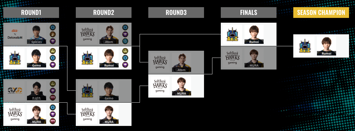 一方のRumoi選手は「(所属するAXIZは過去に優勝したが)今まで個人の勝利がなかったので、個人で大会を勝ちきれたのが嬉しい」と、念願の勝利を喜びます。さらに2nd Seasonについては「今回はチームとしてもポイントを稼ぐことができた。2nd Seasonも50ポイントを取るつもりでやって、個人としても2連覇目指して頑張ります」とコメントし、さらなる勝利を誓いました。